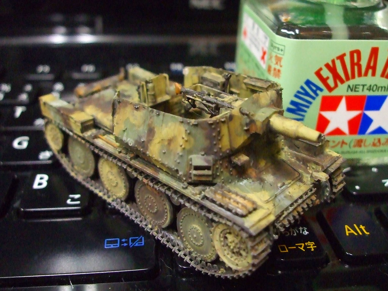 ヘッツァーや38tは履帯が細いため、1/72に縮小した本キットにおいてとても破損しやすいパーツです。また、転輪と遊動輪、起動輪が重なっているため取り付けにはコツが必要です。