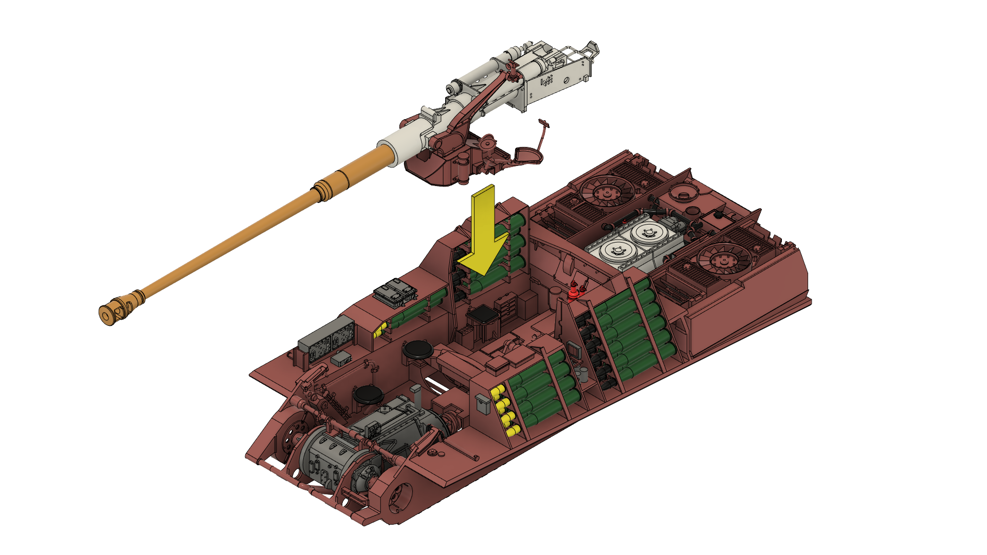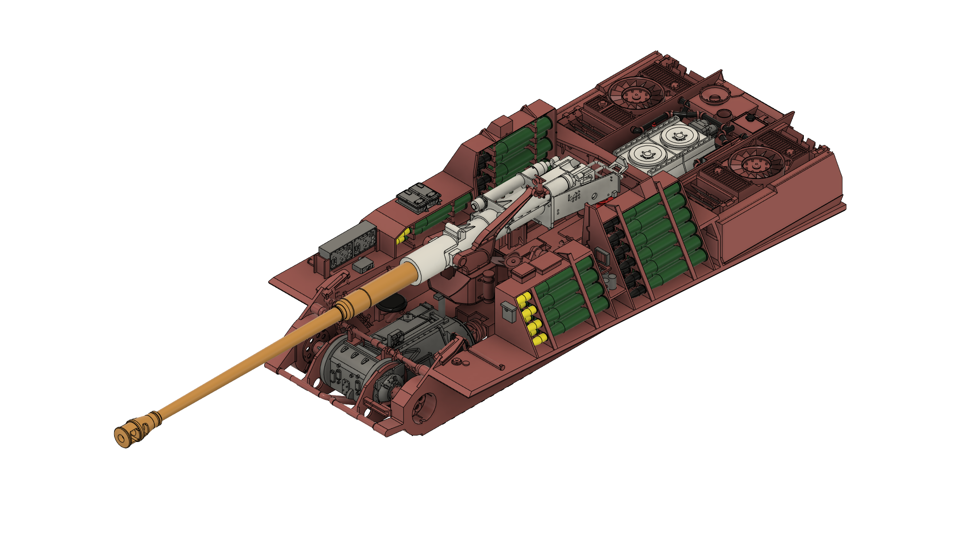 本来、ヤークトパンターの主砲は全面装甲板に装着されており、ストリップの状態で砲を維持することができません。