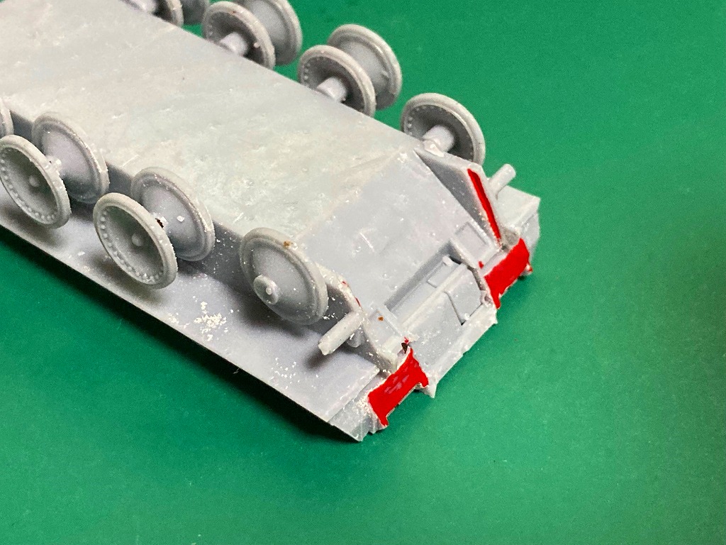 When gluing the tracks to the car body, glue the back of the drive wheel with super glue. At that time, hold it firmly with your fingers so that the drive wheel does not tilt.