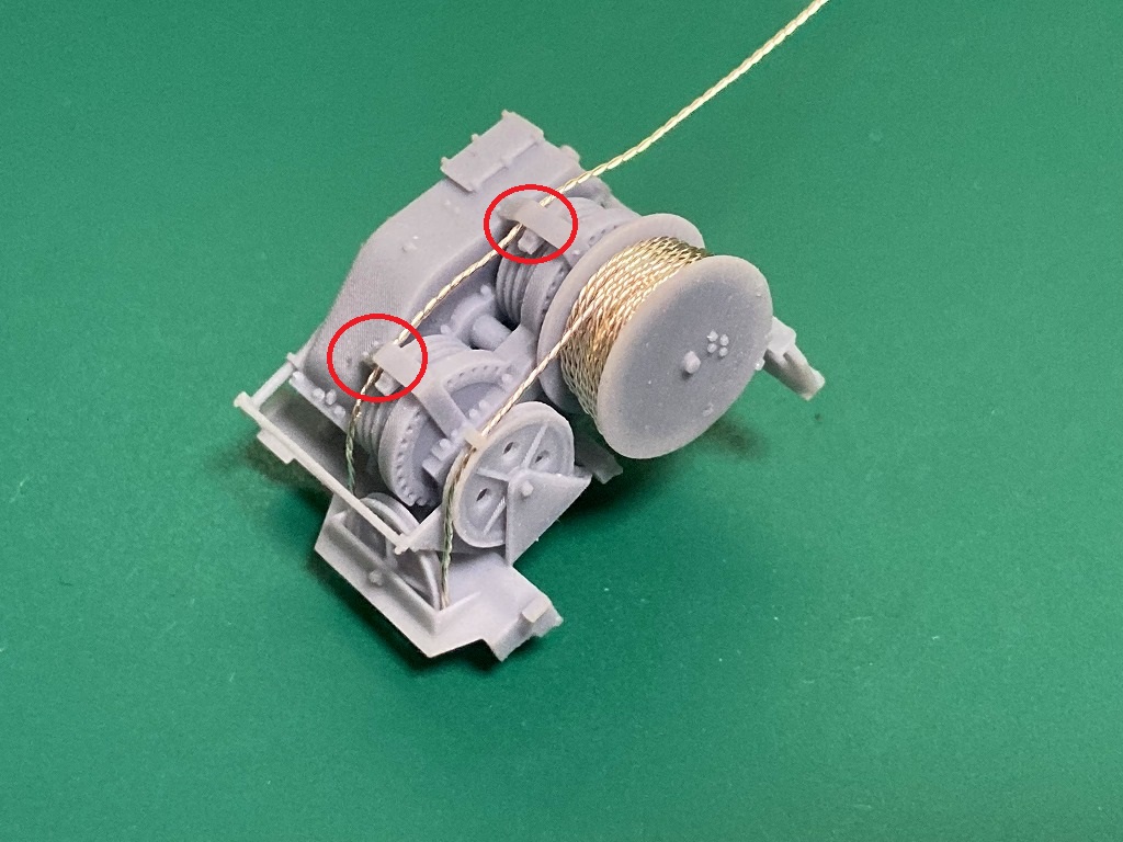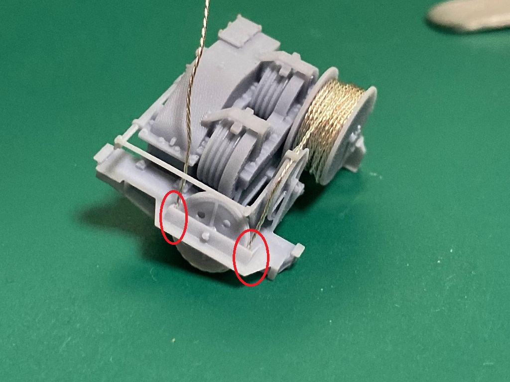 2つ目の滑車のガイドにワイヤを通します。