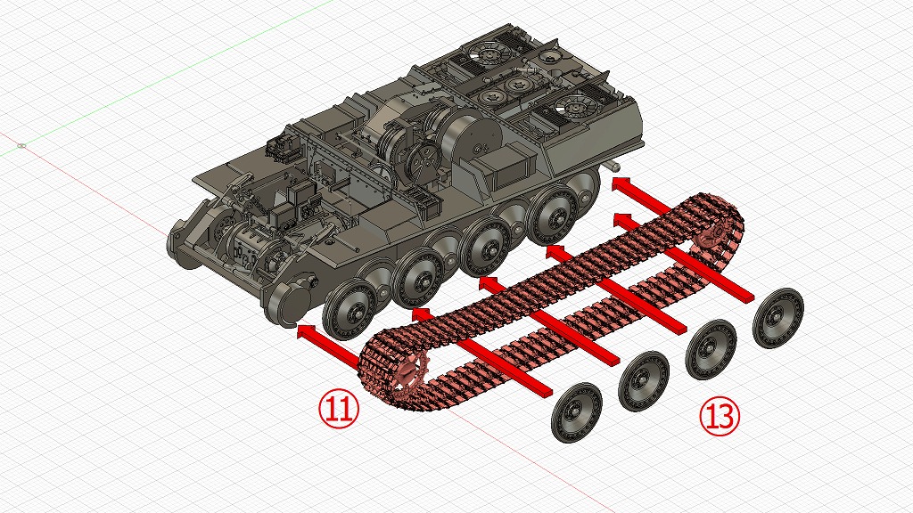 - 履帯・転輪の組立て Assembling the Tracks and wheels