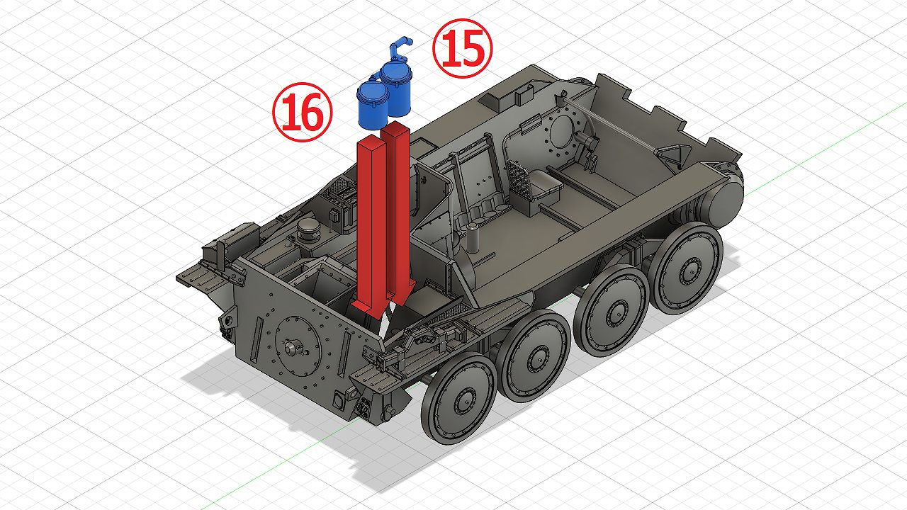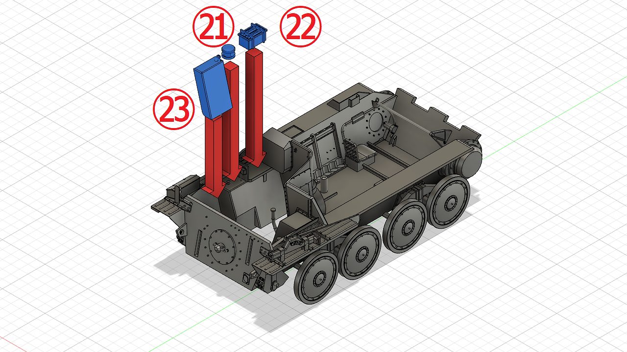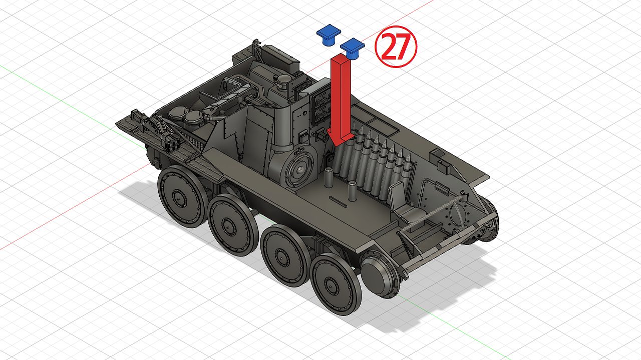 - 砲弾ラックの組立てAssembling the Shell rack (front) & Shell rack (rear)