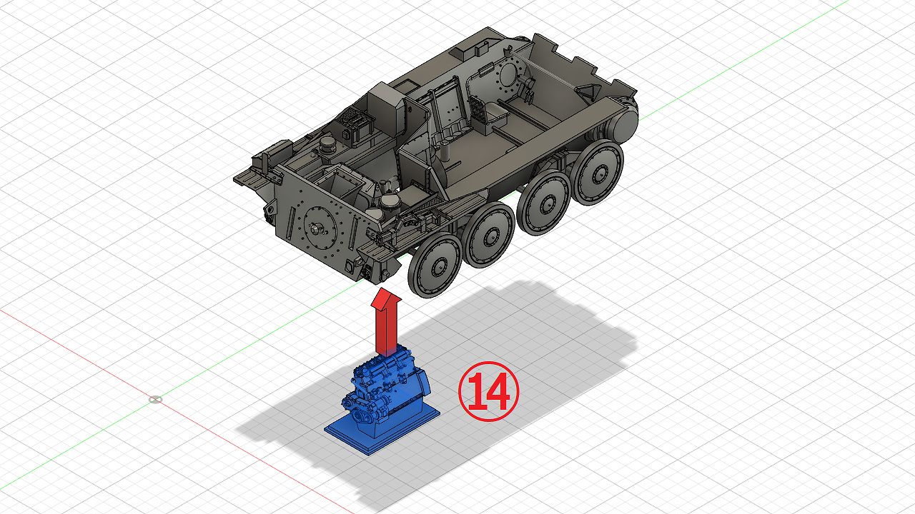- エンジンルーム(左)の組立てAssembling the Engine compartment(left side)