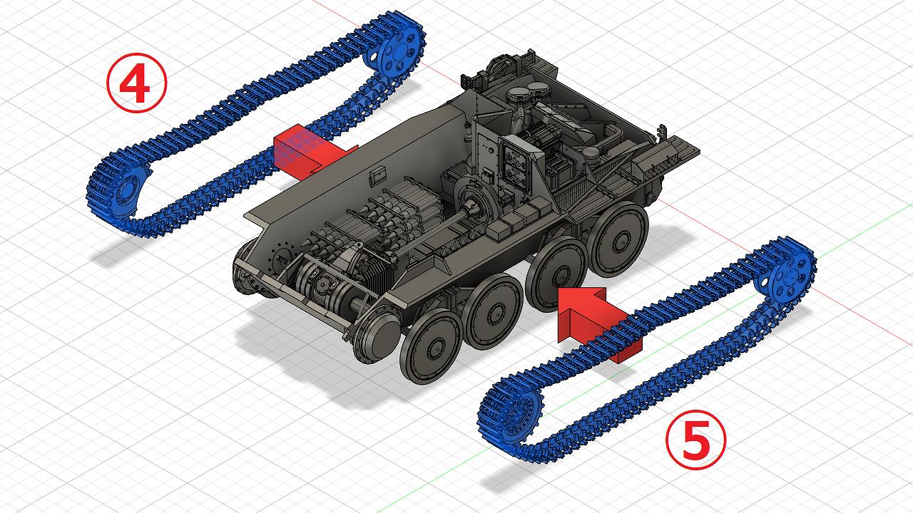 - 予備履帯の組立てAssembling the Spare Tracks (Rear)