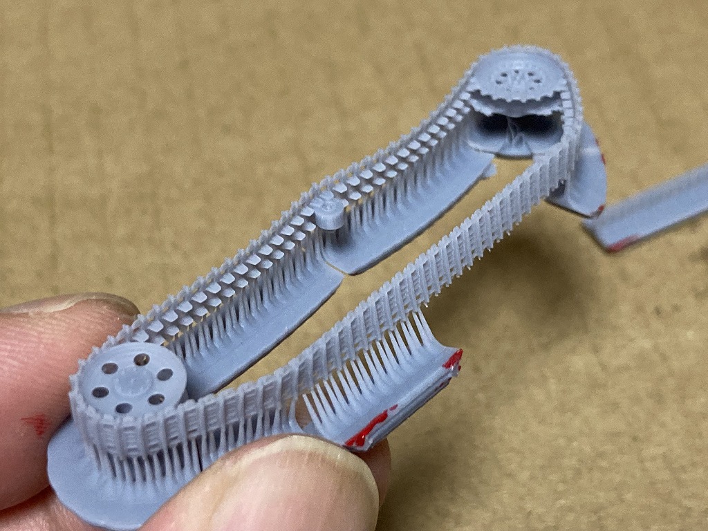 グリレHは履帯が細いため、1/72に縮小した本キットにおいてとても破損しやすいパーツです。サポートを除去するためにはコツが必要です。