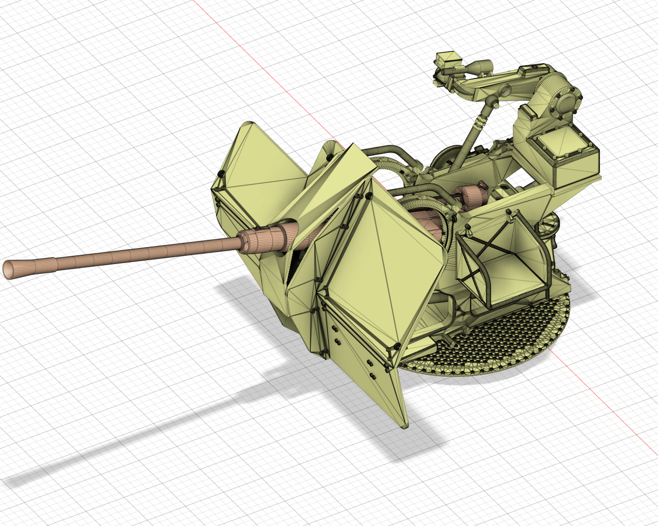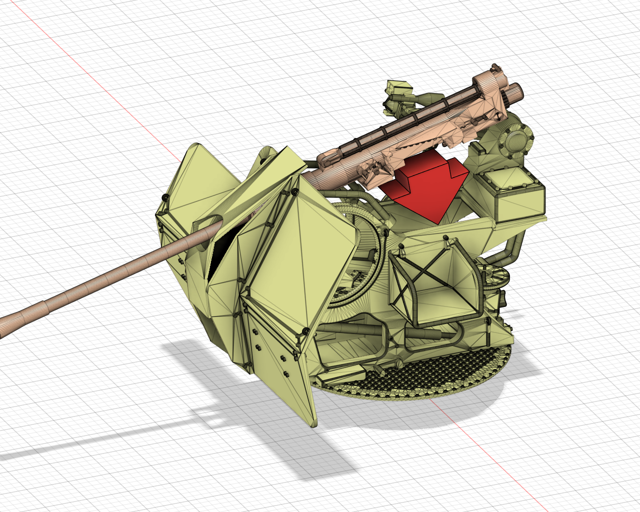 FLAK38の本体に機銃を後方から滑り込ませます。