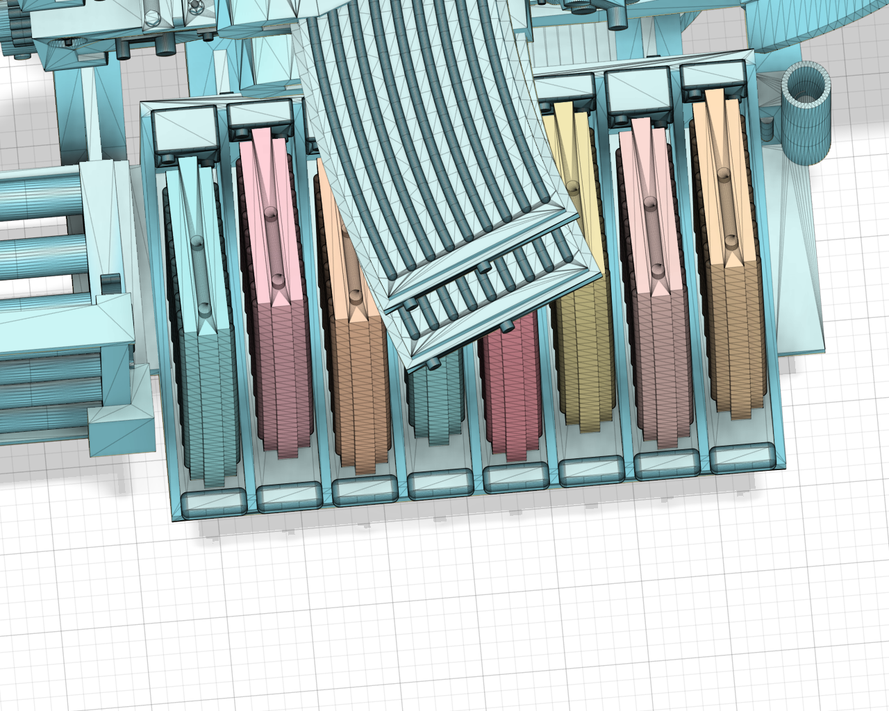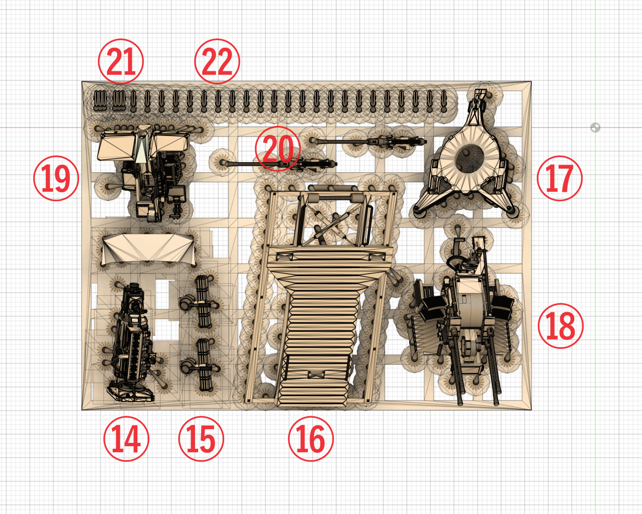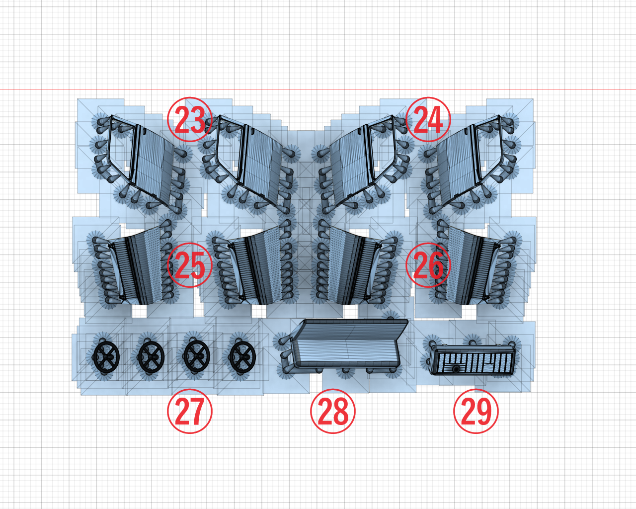 弾倉を左右に取り付けます。左右合計で16個取り付ける場合と、1つ飛ばしに8個取り付ける場合があったようです。以下の図は16個取り付けた場合の例です。