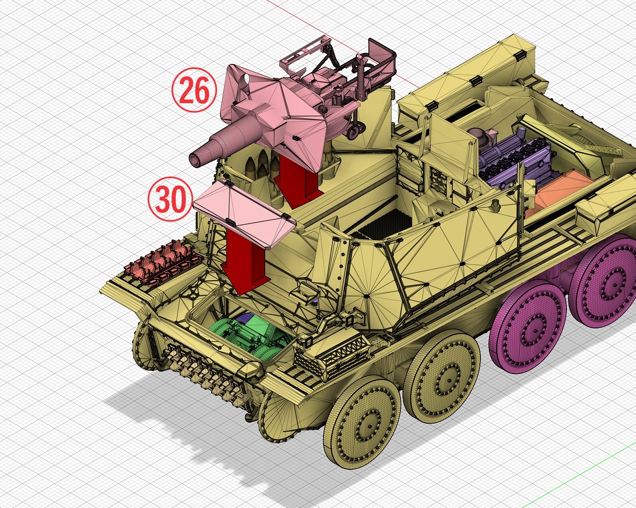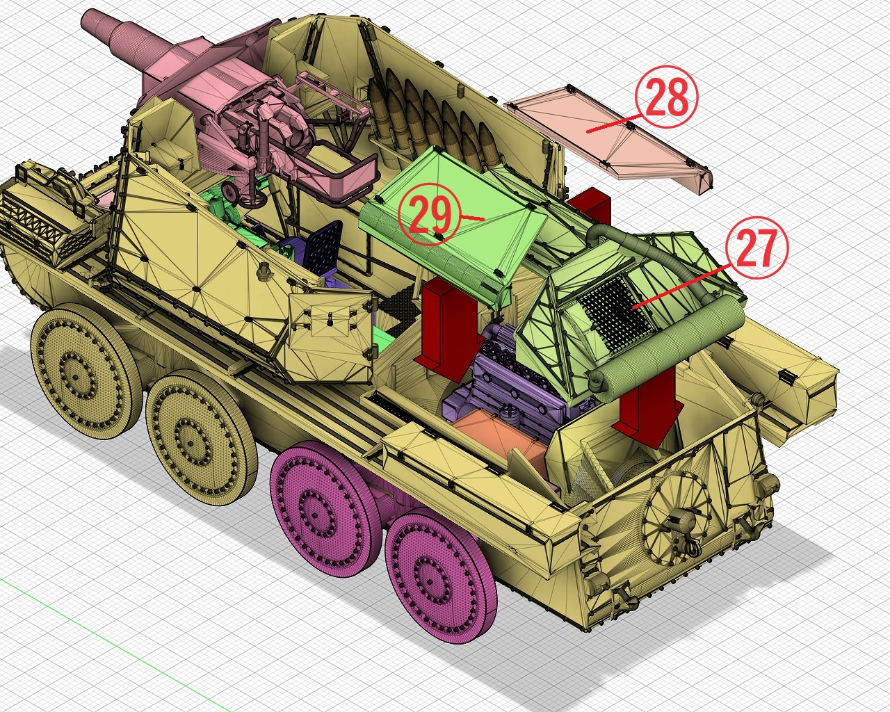 I will explain the parts composition of the 1/72 Vollkettenaufklärer 38 w/7.5cm Kanone 51 L/24 Full Interior Kit [3D printer output product]. Some parts have spares in case they break (not a packaging mistake).