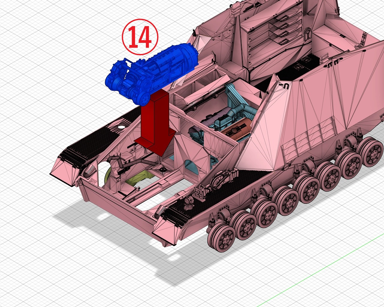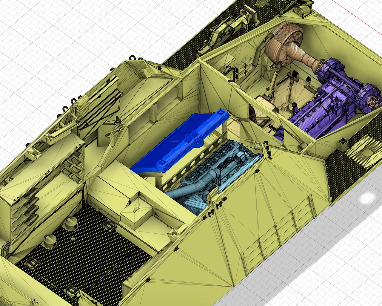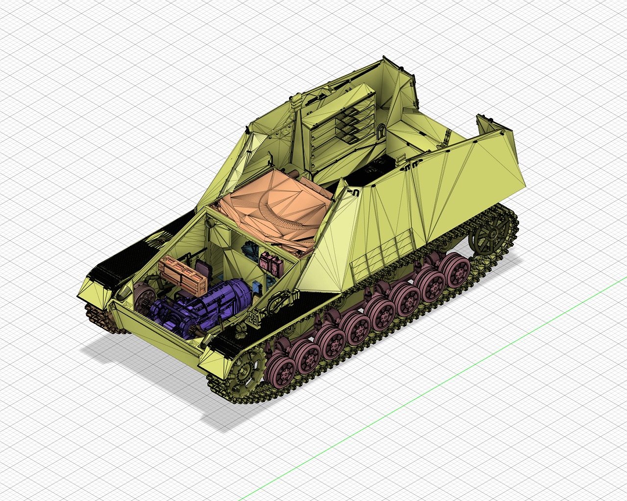 - Engine compartment, transmission, main gun, radio, etc. are realistically reproduced.