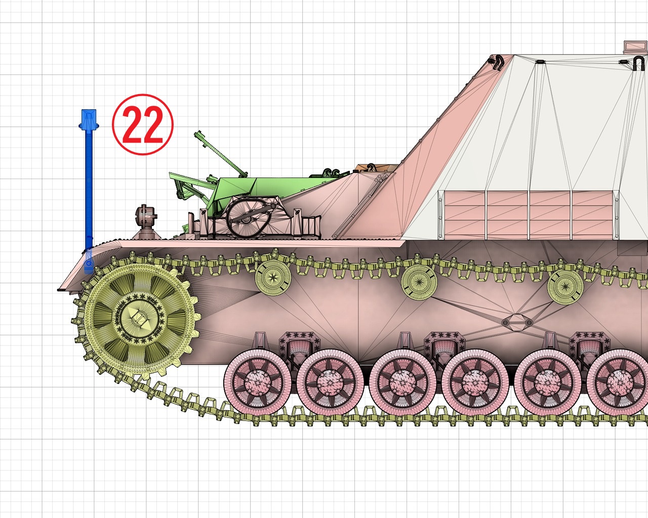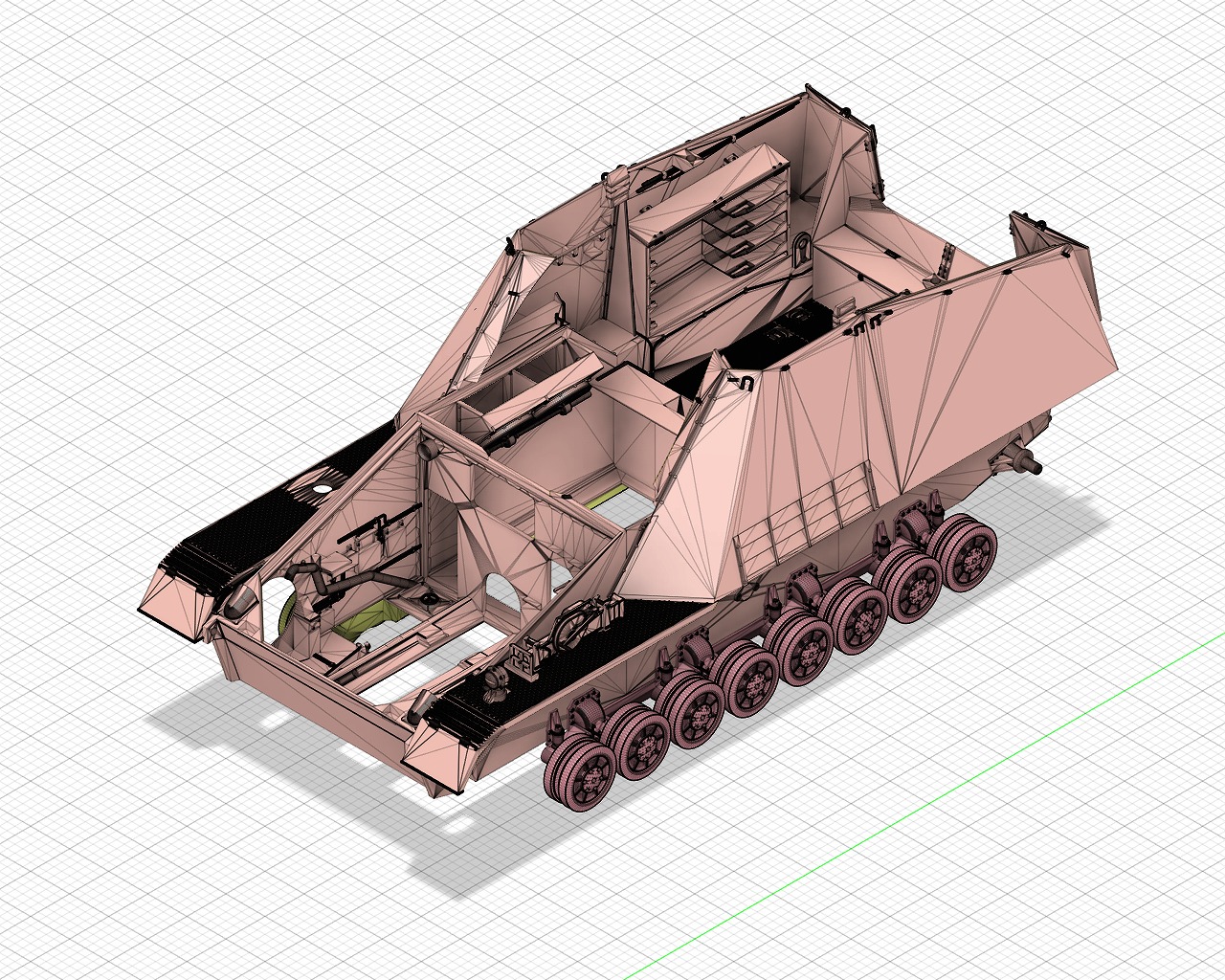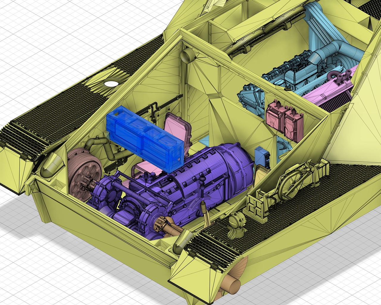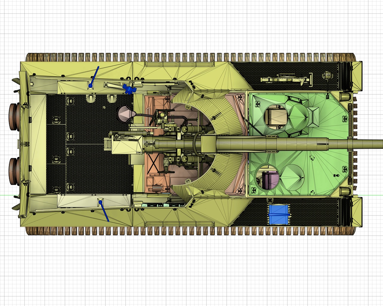 - Engine compartment, transmission, main gun, radio, etc. are realistically reproduced.