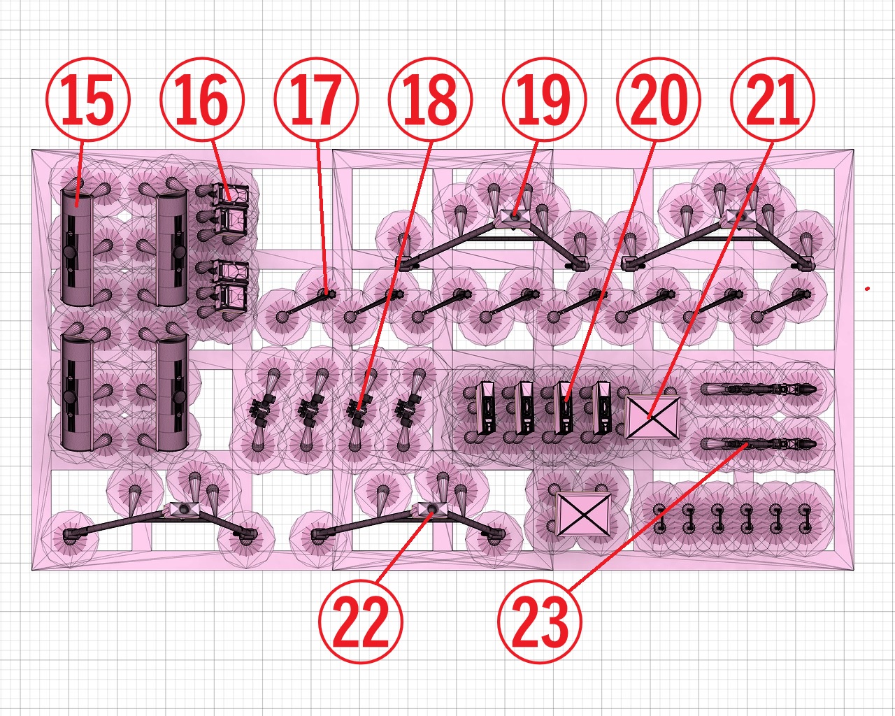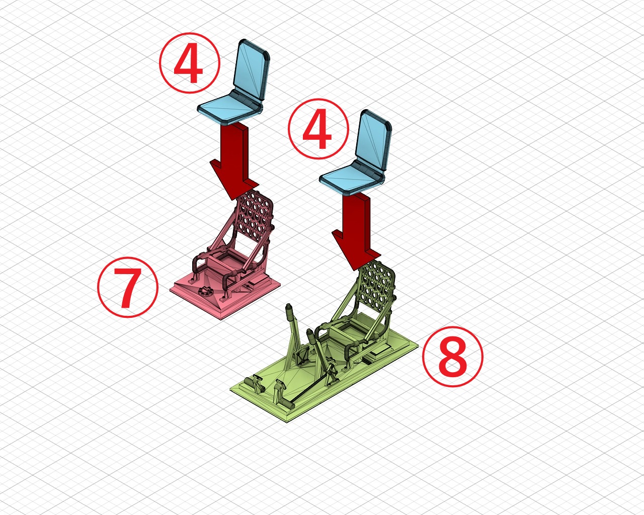 1/72 グリレK フルインテリアキット [3Dプリンタ出力品]のパーツ構成を解説します。いくつかのパーツは、壊してしまったときのために予備が入っています(梱包ミスではありません)。