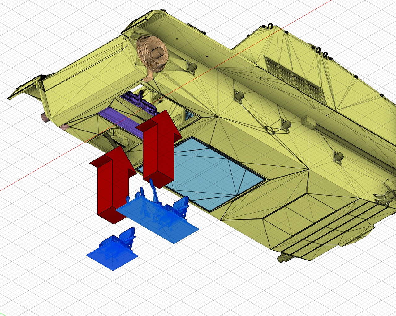 エンジンルームパネルは接着しません。滑り込ませるように配置します。