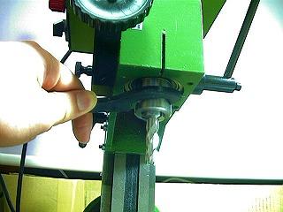 引きねじは緩みましたが・・・エンドミル、外れる???いいえ、びくともしません。強力な力で締め上げていますので、引きねじを緩めたくらいではエンドミルや直装式コレットはびくとも動きません。