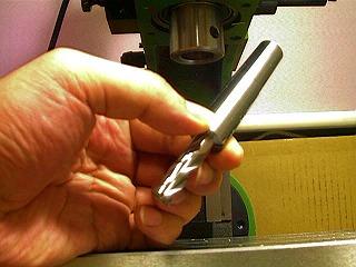 あとはコレットとエンドミルを落としてテーブルに傷をつけないよう、気を付けながらバーとナットを抜き、そしてコレット&エンドミルを外して作業は完了です。