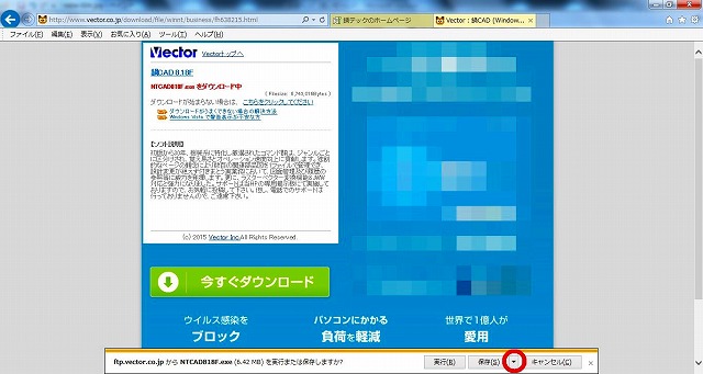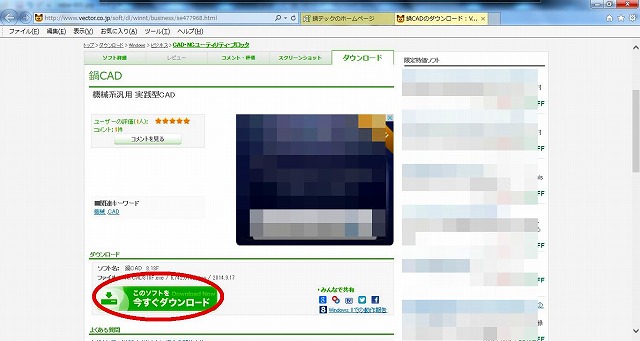 「鍋CAD フリー版」のダウンロードを選択すると、いったん鍋テックさんのサイトを抜けて「Vector」へジャンプします。