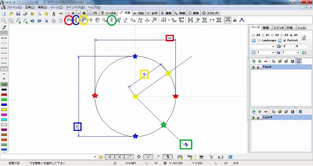円の書き方、線の引き方から始まって、接線、分割点、コピー、回転、移動等、「アマチュアCNC愛好家」が押さえておくべきテクニックを紹介したいと思います。