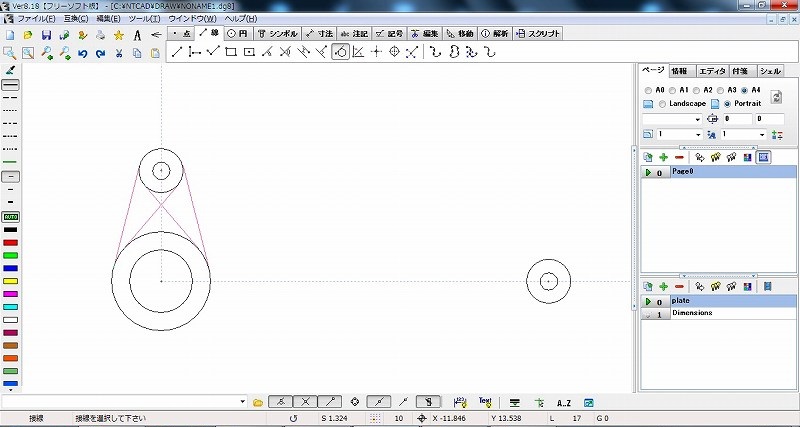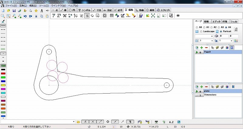 1回の「接線」処理で引くことができる接線は1本です.。この作業を繰り返して、外径を完成させます。