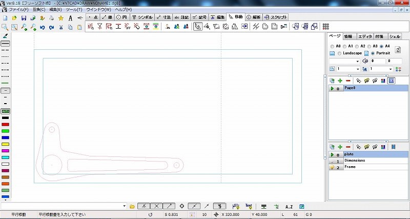 DXFファイル上では図形情報以外は不要ですから、「Plate」レイヤーを表示、その他のレイヤーは豆電球を消灯した状態で「互換」-「DXF書き出し」を行います。