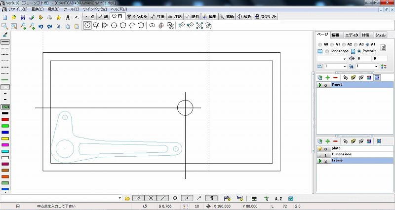 今まで何気なく座標を使って円を書いてきました。今この「ペダル」図面の原点はどこにあるか、わかりますか?