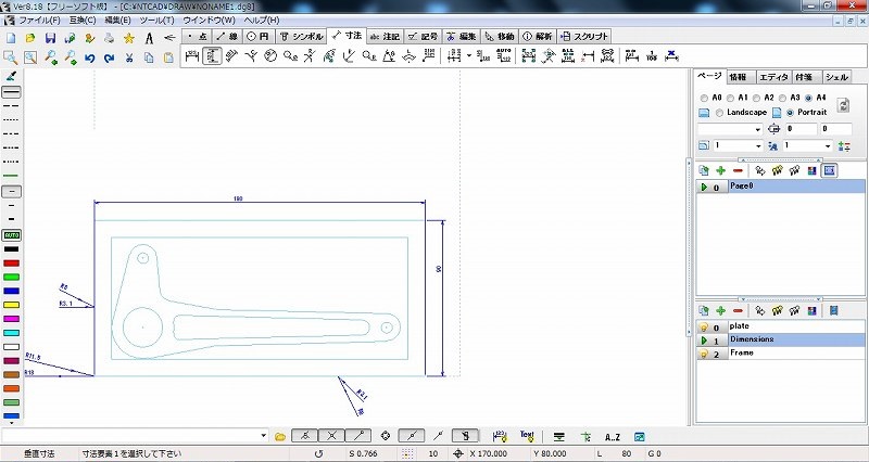 これら寸法もトラップ移動することができます。が、今回は数も少ないので消して書き直しちゃいました。