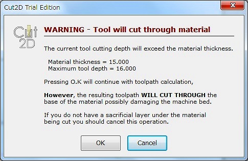 だいじょうぶ?材料の厚さは15mmだけど、パスは16mmまで掘り込んで貫通しちゃってるよ!