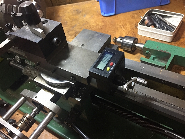 あとは刃物台にガイドとDROユニット、ハンドルを付けた後旋盤に戻すだけ。とても簡単です。