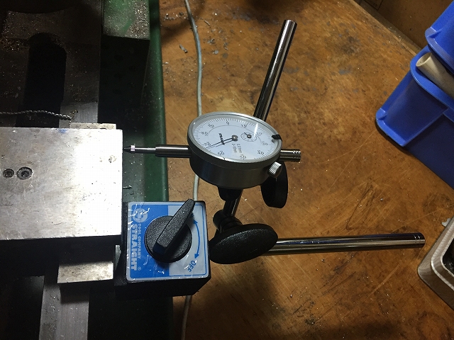 「ハンドルのメモリ」を使用した加工のデメリットの1つ、「バックラッシュを吸収してくれません」を解決してくれるのがこの「ダイアルゲージを使用した加工」です。