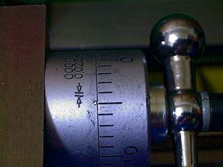恐らくほぼすべての旋盤には、ハンドルの根元にこの「メモリが刻まれたダイヤル」が用意されています。このダイヤルのメモリは送りねじのリードにあったメモリと数値がきざんであり、このひとメモリがたとえば日本仕様(ミリ仕様)の送りねじであれば、0.025mmを示しています。