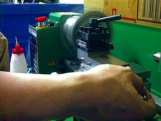 私は自分でやってみるのです。その切削量わずか0.2mm、やりなおしきかないです。しかもこれ私のマシンではありません、実験台になって下さったオーナー氏に拍手!(勇気あるぞ) ここでは、わたしが実際に行なった手順を追ってご説明致します。FL350Eの使い勝手のイメージが皆さんに伝われば、と思います。これ、いいすっごく旋盤なんです。