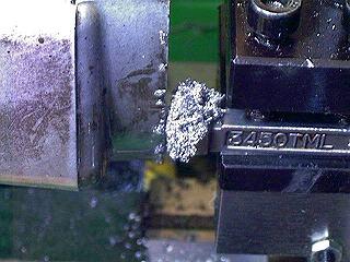 1/20mm切削の時にできるキリコはこんな感じ。糸クズのような、綿ボコリのような。参考までにバイトの幅は8mmです。