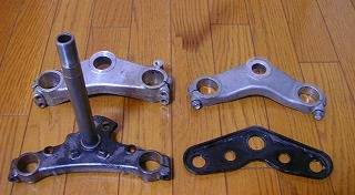 はいはい、もちろんOKですよ!いつもお世話になっていますから、それくらいお安い御用です。今回はAPE100とRS125ぞれぞれのトリプルツリーとトップブリッジをお預かりして帰ります。いつもどおり自宅にて検討。