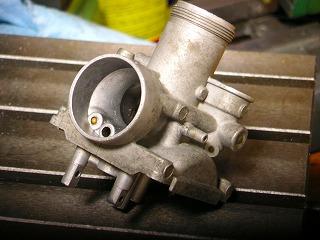 キャブとしてはなんといいますか、普通のキャブです。材質は鋳造アルミ、切削性もよく加工相手としてはそんなに難易度が高いわけではありません。