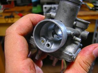 さすがに外してしまったキャブをもう一度セットして0.05だけ均等に削ることはできません(傾いて装着してしまったら穴が楕円になってしまう)、ここでギブアップ。うーん、小径用のシリンダボアゲージ、必須かなあ。