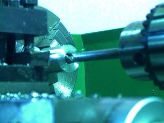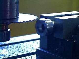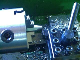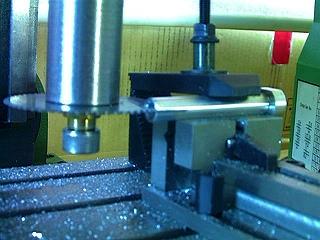 自作したすり割りフライスアーバーを使用して、シャフトの頭をアタッチメントに組み合わさるように加工します。うん、自作工具の使い心地はまた格別ですね~。
