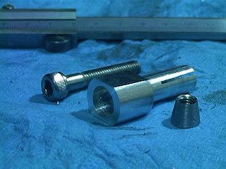お尻は例の主軸回転ハンドルのように、十文字にすり割りを入れ、円錐ナットが広げることで固定される仕組みにします。