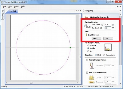 ここではCut2DというCAMを使用します。