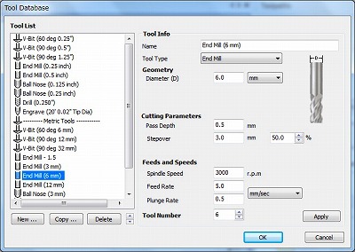 表示される「Tools Database」画面でツールの設定を行います。