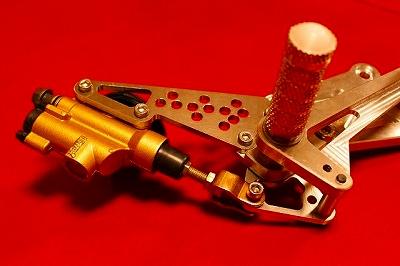 ヒールプレートの外に付ければカンタンですが足に引っかかって操作性がよろしくない。リンクを介してべダルの動きを内側にずらし、マスターシリンダーをヒールプレートの裏に隠すことに成功しました。