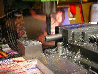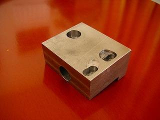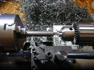 長いシャフトになりますので、12mmのSC45丸棒を切り出し、長さをそろえ、端面に穴をあけネジを切ります。温度が上がって焼きが入ることさえ注意すれば(高価なバンドソーの歯が駄目に(涙))、加工は意外なほど楽です。