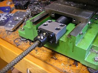 ボールネジ取り付けブロック、沈め穴を削っている最中、X軸のボールネジを固定しているイモネジが緩みこんなありさまに・・・。