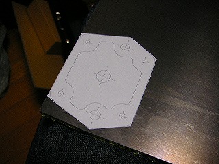なぜかそれっぽく肉抜きのラインが印刷されていますが、これはもちろん今回は無視です。こんなの手動で抜けるはずがありません(そんな腕があったらCNC化なんてしない)。しかし、こんな肉抜きの線が引けるのもCADのお陰です。さりげなく見える外周も、実はネジ穴と同心円を描き、その接線を引き、交点をR処理・・・とそれなりにCADっぽいこと?をしているのです。