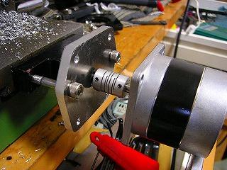 モーターと送りねじの結合は「カップリング」という汎用部品で行います。これは軸径の変換を行うと共に、材質のアルミの弾性を利用してモーターと送りねじの微妙なズレ・振れを吸収してくれるという便利なものです。しかもノーバックラッシュ。なんてすばらしい。実物を手に取ると、アルミ党(?)であれば思わずにやけてしまう出来栄えです。ホント、これ1つをつまみに晩酌できます。
