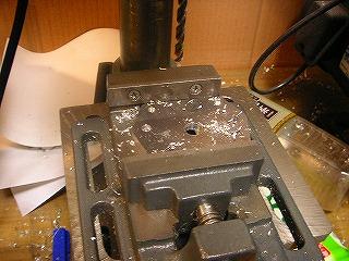 例の「CAD図面印刷貼り付け作戦」はもう使えませんので、まじめにケガき、穴を開けます。・・・予想通りずれたみたいです。こういうのも、フライス盤がCNC化された暁には、切り出しと同時に正確な穴あけを一発加工!(夢だあ・・・)