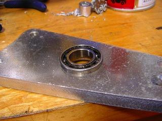 10mmの2017S板材に外形28mmのベアリングを圧入します。1.5mmだけリップを出します。リップの反対側は、あとから旋盤でCリング穴を切る予定です。