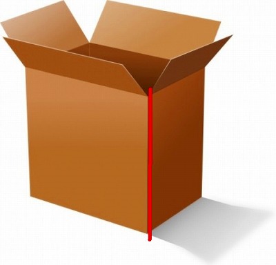 まず大きめの段ボールを用意します。図の赤線部分を大きなはさみ又はカッターで切り離します。ケガをしないように気を付けて。