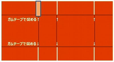 上下のべろの部分に、スキマができますね。ここをガムテープを表、裏から貼り付けふさぎます。