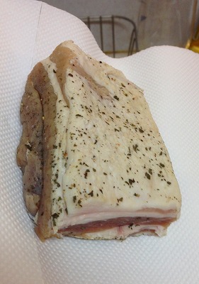 塩・胡椒・乾燥バジルをすり込んだ豚バラブロック
