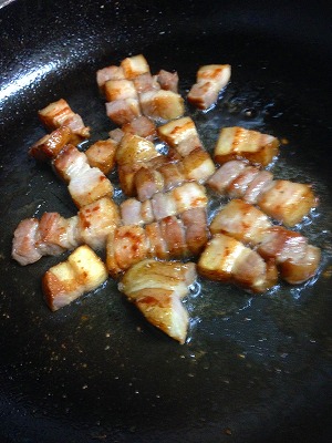 油なんて要りません。ベーコンから油がにじみ出ます!市販のベーコンではこの油が出ないんです。