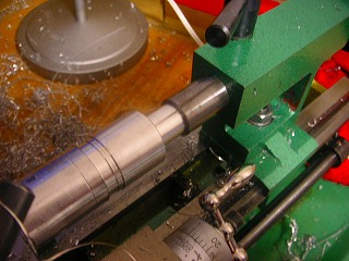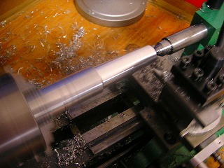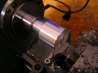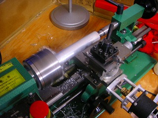 ・・・切削油くれるくらいしか仕事ありません。しかし、ただのアルミ塊円柱からテーパーが削りだされてゆくのは見ていてなかなか楽しいところです。