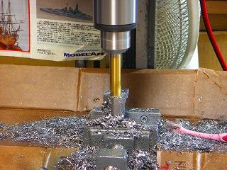 アゴを引っ張るとても重要なパーツです。快削スチールで作りました。初めて快削材を削りましたがガンガン削れますね、あまりの快適さにびっくり。寸法的に考慮不足があり、ちょっと追加加工が必要なのですがとりあえずこのまま行きます。